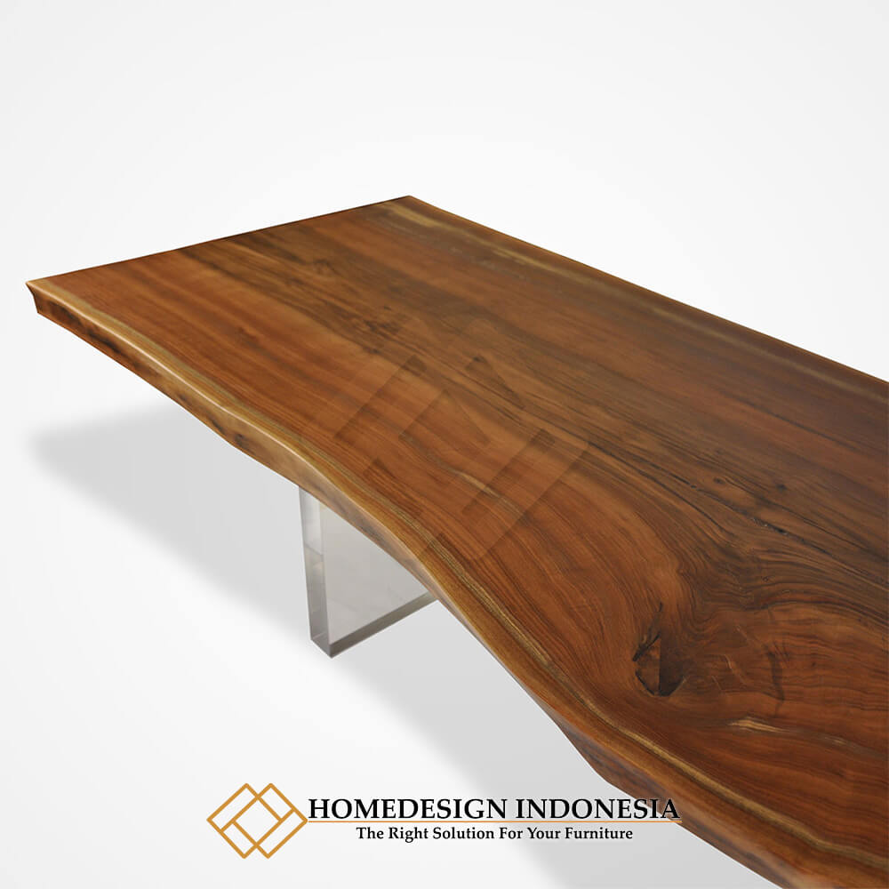 • Meja Kayu Trembesi Minimalis Modern Kaki Akrilik Transparant JF-261