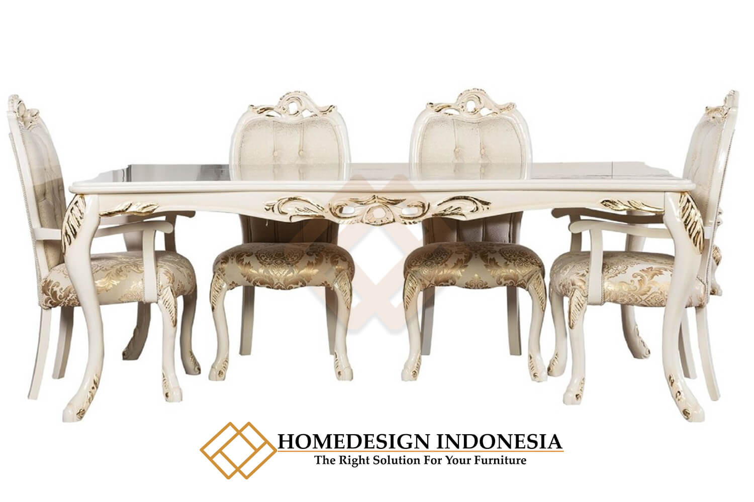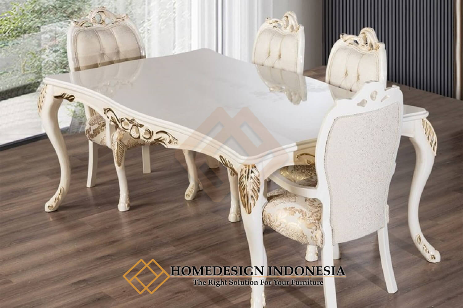Meja Makan Mewah Solid Putih Duco Elegant Beludru Fabric JF-282